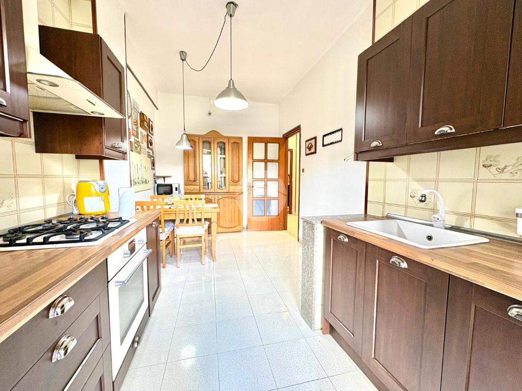 In contesto residenziale tranquillo e riservato, proponiamo in vendita un appartamento sito al secondo piano di uno stabile in cemento armato dotato di ascensore. L’immobile si sviluppa su una superficie ben distribuita, ed è composto da: ingresso in disimpegno, ampio soggiorno, cucina abitabile, camera da letto matrimoniale, cameretta, bagno e ripostiglio, inoltre gode di una doppia esposizione, che assicura un’eccellente luminosità.