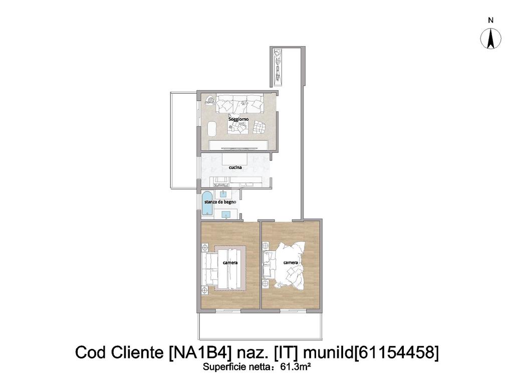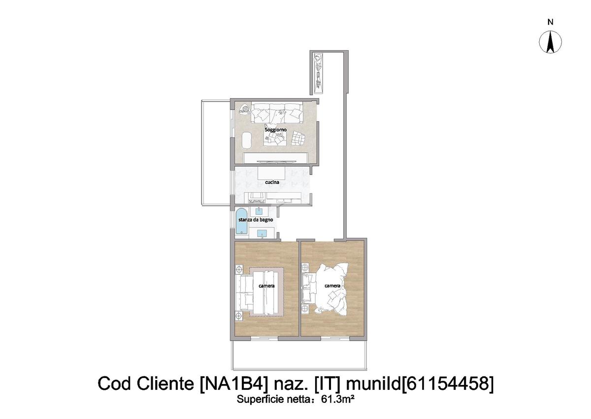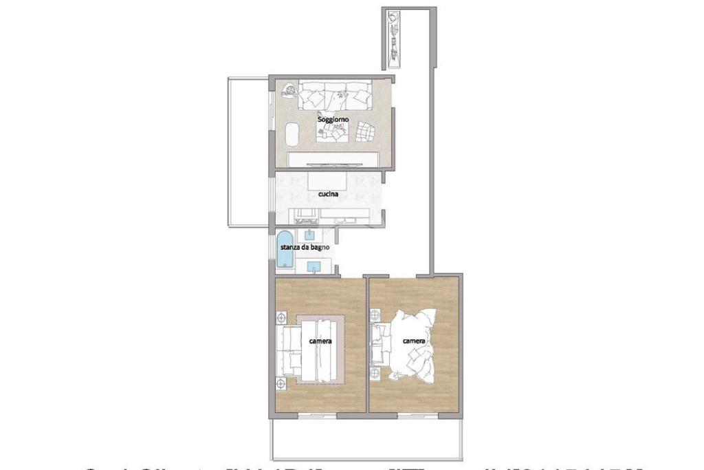 L’ appartamento è così suddiviso ingresso in disimpegno che distribuisce in modo funzionale gli ambienti. La zona giorno si compone di un ampio e luminoso soggiorno, ideale per momenti di relax e convivialità, e di una cucina abitabile, perfetta per la vita quotidiana.