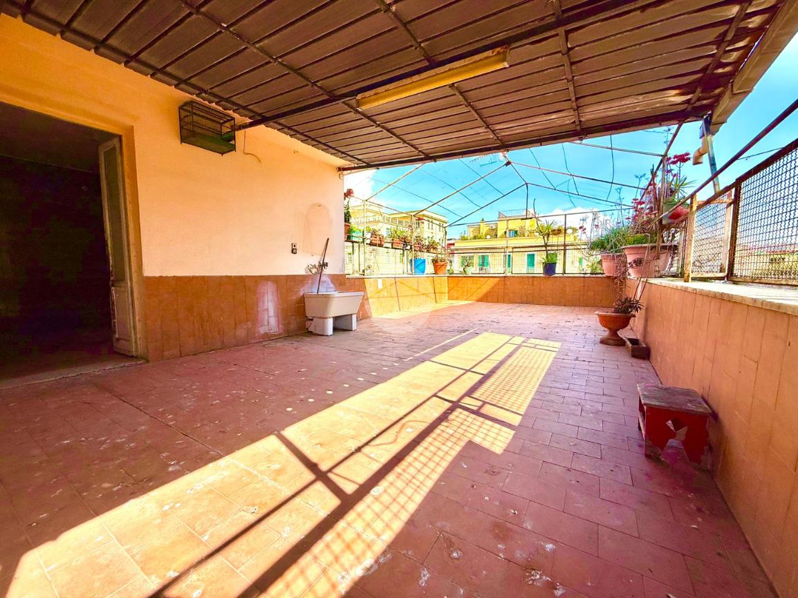 Salendo al livello superiore si accede ad un disimpegno centrale che distribuisce gli ambienti. Il piano ospita un soggiorno con doppia esposizione, particolarmente luminoso, una camera da letto anch’essa con doppia esposizione con balcone con affaccio su Via Plinio, una cucina abitabile ed un bagno finestrato.