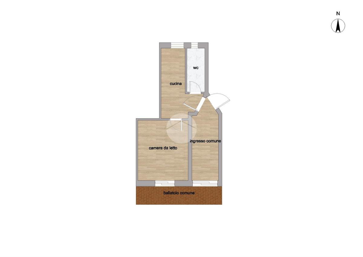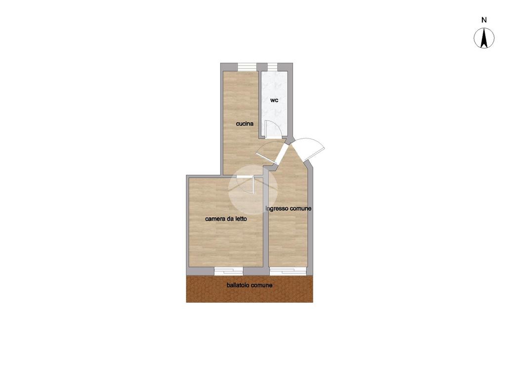 L’immobile, di circa 30 mq commerciali, è un bilocale ben distribuito negli spazi interni. L’accesso avviene tramite ballatoio esterno, che conduce a un ingresso comune, garantendo una maggiore privacy rispetto all’esterno.